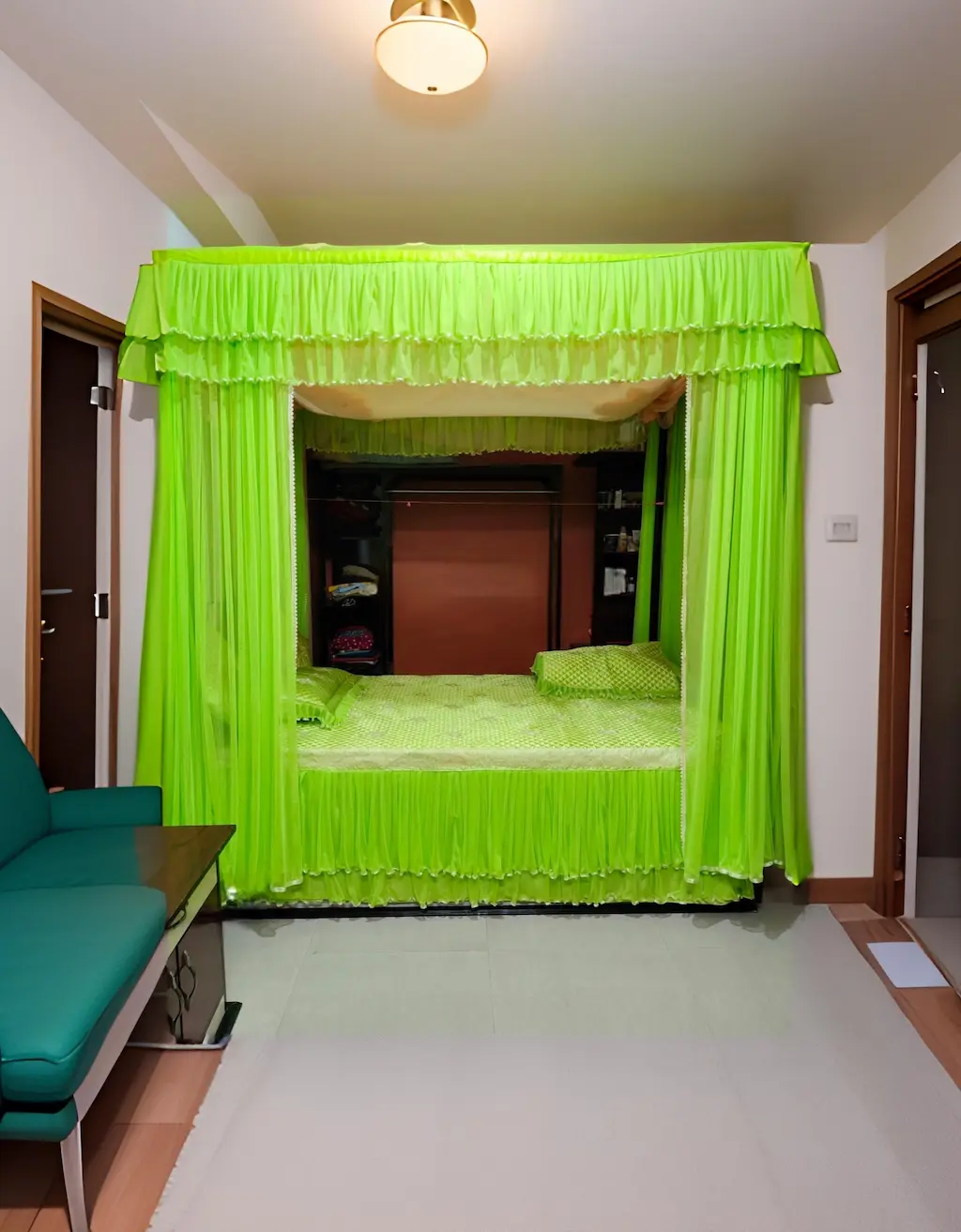 This elegant curtain style mosquito net is designed to fit single well as double beds, offering full protection from mosquitoes and other insects. Its breathable mesh fabric ensures ventilation, while the four-sided drape adds a decorative touch to your bedroom. Easy to hang and maintain. Curtain style allows to move the nets sideways in all four sides.